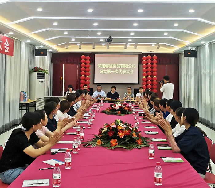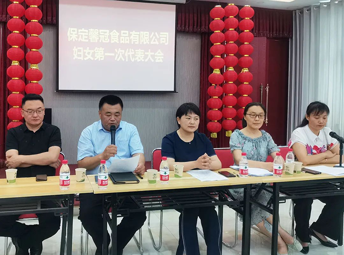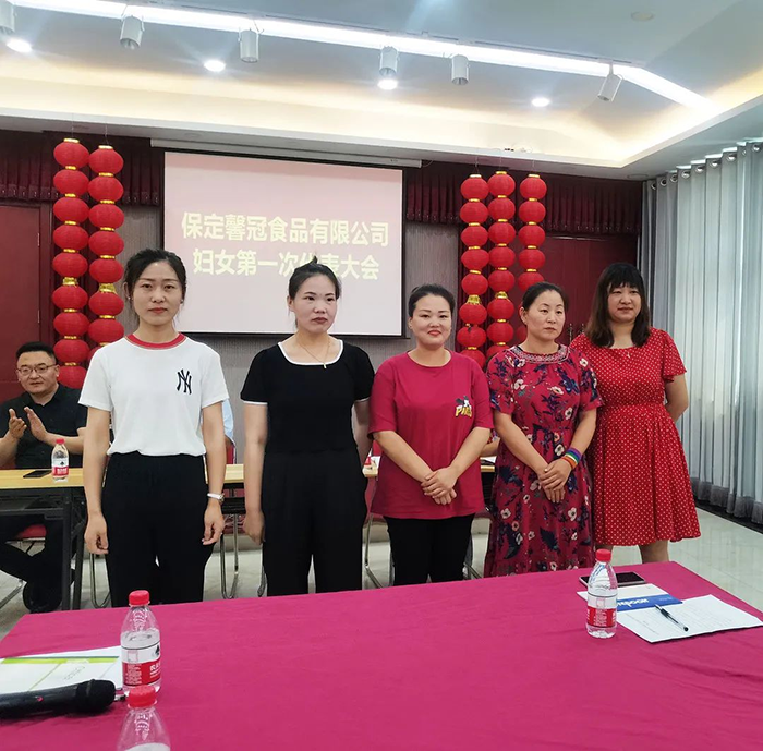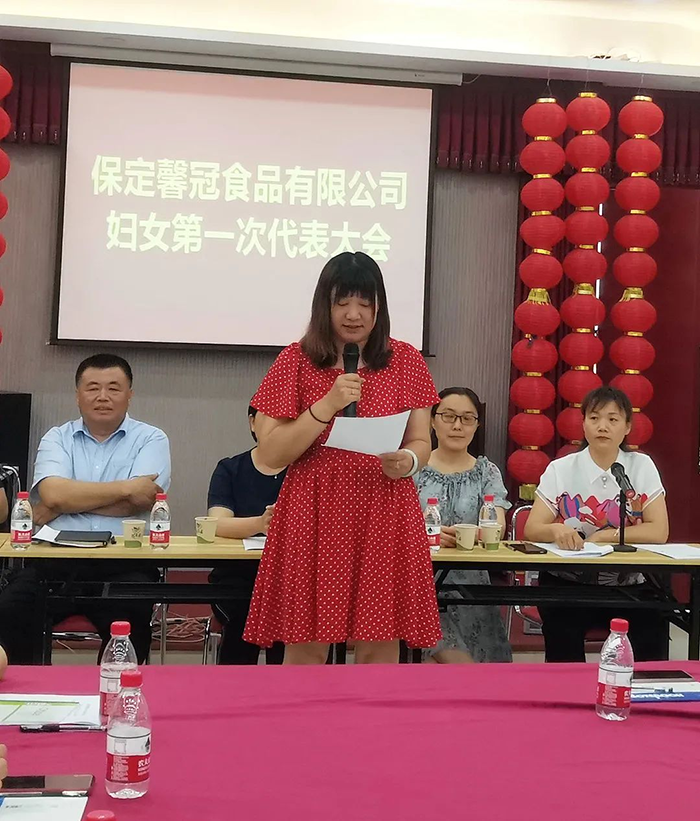 萬(wàn)物蔥綠,麥浪金黃,在這個(gè)盛夏浪漫時(shí)節(jié),2021年6月8日,保定馨冠食品有限公司迎來(lái)公司第一次婦女代表大會(huì)。宣布成立馨冠食品公司“婦女聯(lián)合會(huì)”。會(huì)議選舉產(chǎn)生第一屆婦聯(lián)執(zhí)行委員3名、主席1名、副主席1名。滿(mǎn)城區(qū)婦聯(lián)主席要彥偉、婦聯(lián)三級(jí)主任科員安麗敏出席會(huì)議,于家莊鎮(zhèn)婦聯(lián)主席王艷茹主持會(huì)議。村支部書(shū)記盧志鵬及馨冠公司黨支部負(fù)責(zé)人出席會(huì)議。馨冠公司30名婦女代表參加會(huì)議。 滿(mǎn)城區(qū)婦聯(lián)主席要彥偉、馨冠公司董事長(zhǎng)盧長(zhǎng)永發(fā)表講話(huà)。