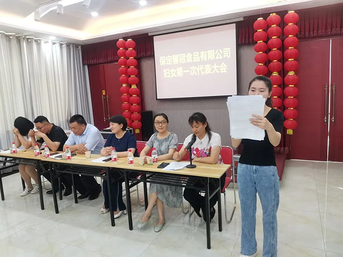 按照《中華全國(guó)婦女聯(lián)合會(huì)章程》,大會(huì)一致通過(guò)了《保定馨冠食品有限公司婦女第一次代表大會(huì)選舉辦法(草案)》,大會(huì)實(shí)行差額選舉,候選人數(shù)6名,應(yīng)選執(zhí)委5名。選出第一屆婦女聯(lián)合會(huì)執(zhí)行委員會(huì)委員3名。以等額選舉產(chǎn)生主席1人,副主席1人。