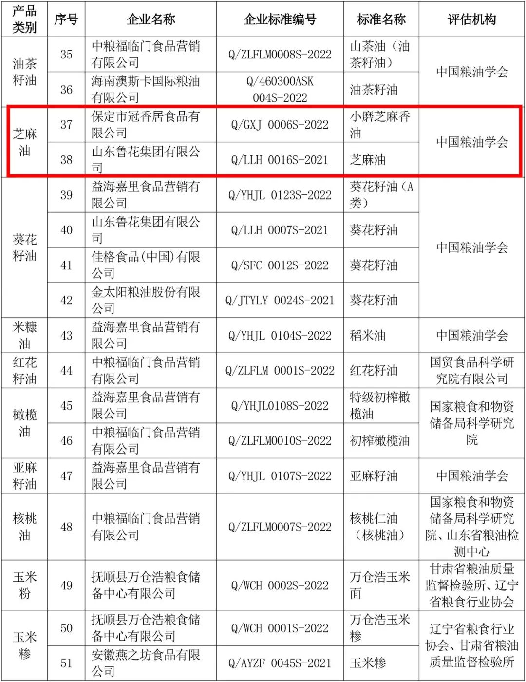 恭喜冠香居公司獲得2022年糧油產(chǎn)品企業(yè)標(biāo)準(zhǔn)領(lǐng)跑者!